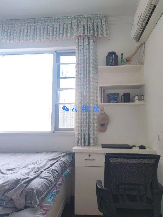 4.房间配置:两米大床,落地式大型储物柜三个,壁挂式中型置物柜两个,空调,小型置物柜一个,办公课桌,电脑椅,窗帘,三种切换式房间电灯+床头灯,床头插座