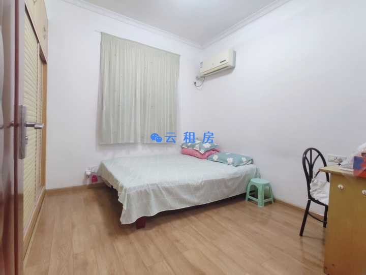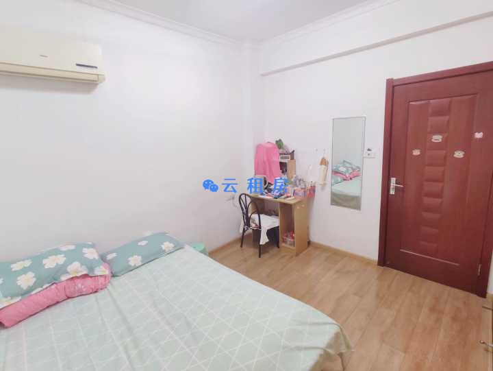 整墙衣柜,巨能装,装不下客厅全部可以放。屋里有穿衣镜。房间内地板干净可光脚,可做瑜伽。床为1.5米。