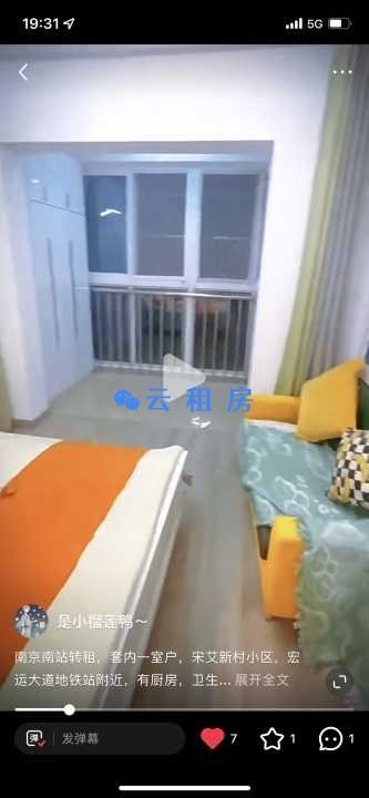 套内单室户,个人原因工作不在南京了,距离宏运大道600米,南京南站附近工作的可以选择它,带阳台,独立卫生间厨房洗衣机,独立电表,电费0.85元一度,水网包