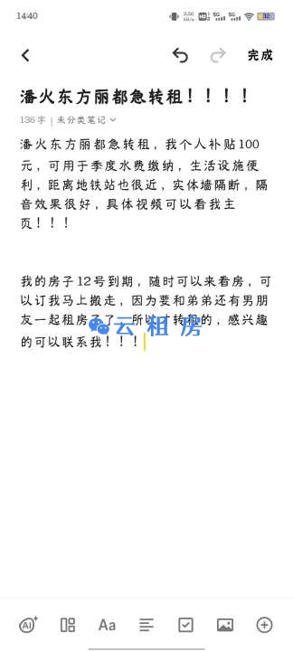 个人转1.转租原因:由于个人工作原因,需要急转租出去,不是中介,不会收取...