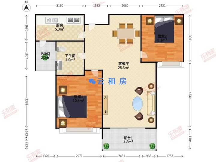 房租:押二付一,不含物业费,水电费租客自行承担。房屋面积实用面积约110...