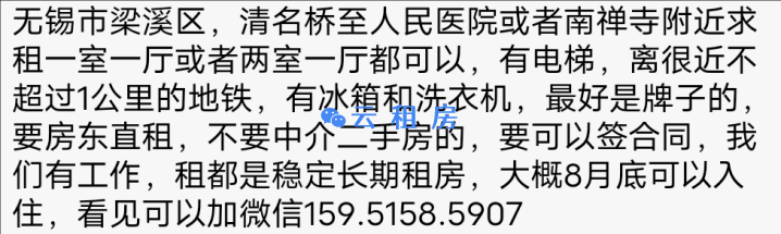无锡市梁溪区,清名桥至人民医院或者南禅寺附近求租一室一厅或者两室一厅都...